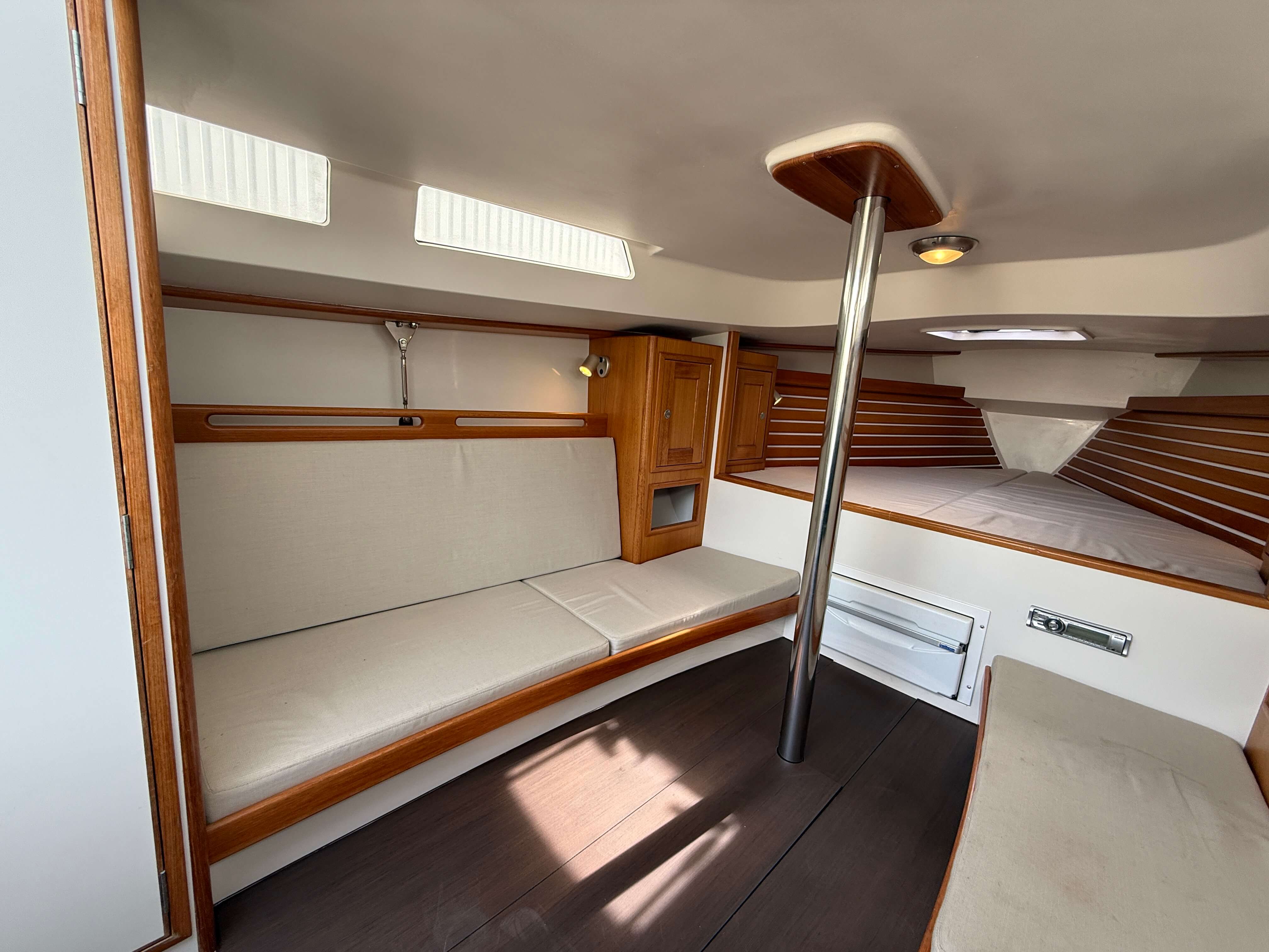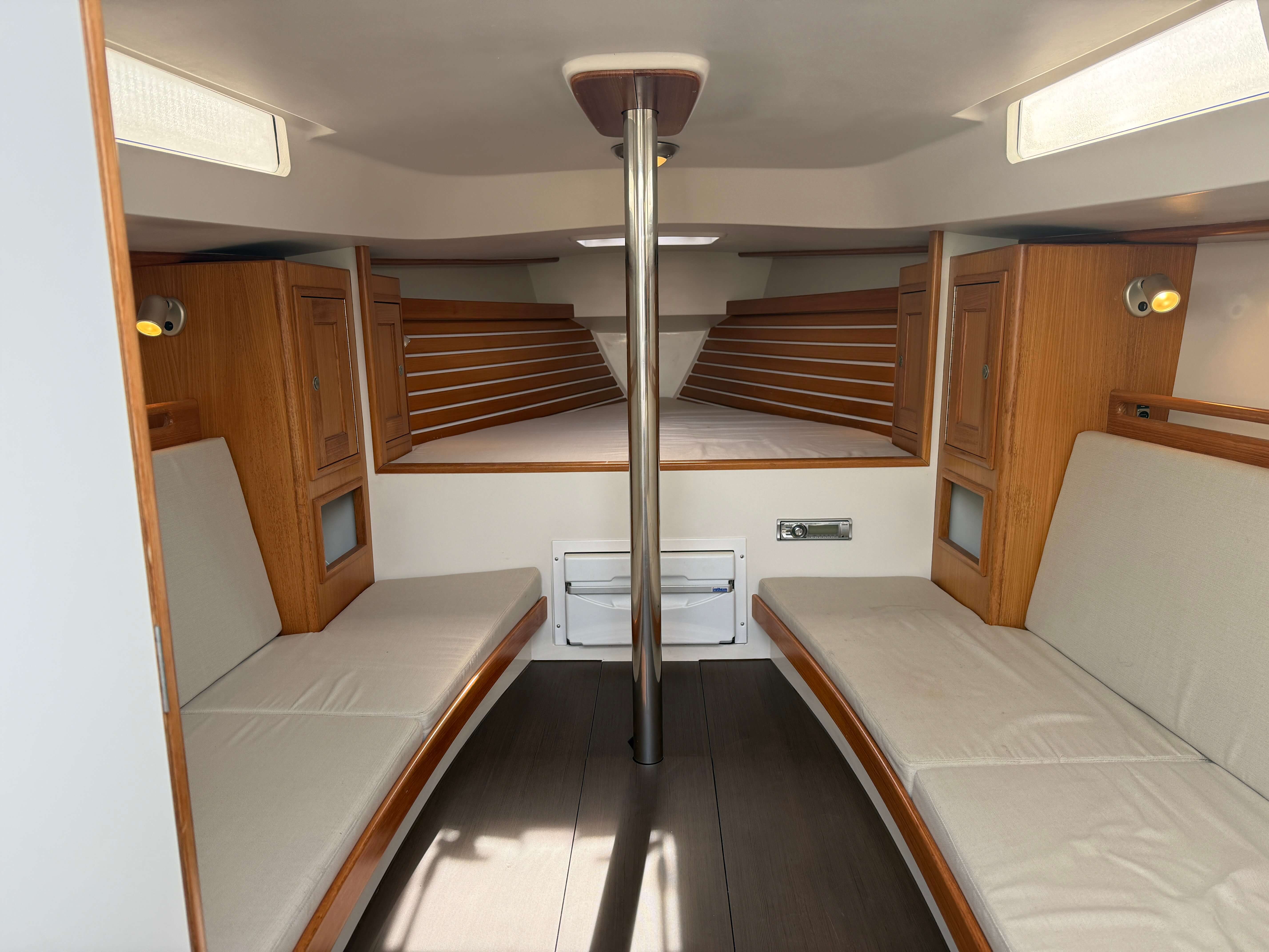 Saffier SC 10m te koop, bouwjaar 2013. De Saffier SC 10m is ontworpen voor zeilers die de elegantie en vaareigenschappen van een dagzeiler willen combineren met het comfort van een volwaardig interieur. Met een krachtige tuigage, een diepe kuip en verfijnde lijnen biedt zij uitstekende zeileigenschappen en tegelijk alle ruimte voor weekendtochten. Gebouwd in beperkte aantallen, is de SC 10m Cabin nog altijd geliefd bij eigenaren die waarde hechten aan kwaliteit, comfort en een tijdloos ontwerp.